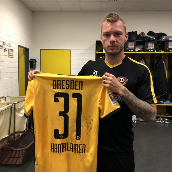 getragenes Sondertrikot vom 10. Spieltag am 19.10.18 gegen FC Erzgebirge Aue mit Unterschrift von Brian Hamalainen |