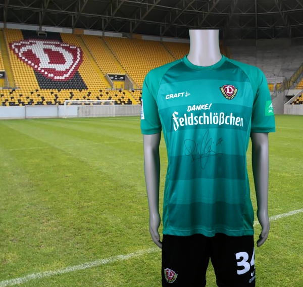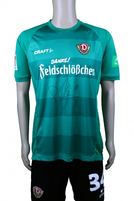 getragenes Sondertrikot aus der Saisonvorbereitung gegen BSG Stahl Riesa und BSG Wismut Gera mit Unterschrift von Patrick Wiegers |