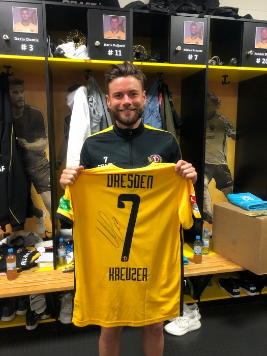 getragenes Sondertrikot zum Elb-Clasico vom 26. Spieltag am 16.03.19 gegen 1. FC Magdeburg mit Unterschrift von Niklas Kreuzer |